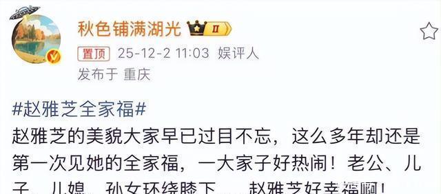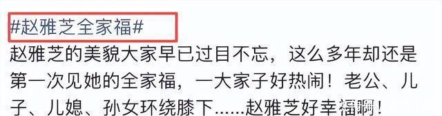 那时候大家总把她们俩绑在一起讨论,就好像一对黄金搭档似的,可谁能想到,三十多年过去,两人的人生轨迹居然拉开了这么大的距离。 说起来,这事儿还得从最近的一个热搜说起,让人忍不住感慨万千。 说实话,我刷微博的时候,看到“赵雅芝全家福”这个话题冲上热搜榜,心里头还挺好奇的。